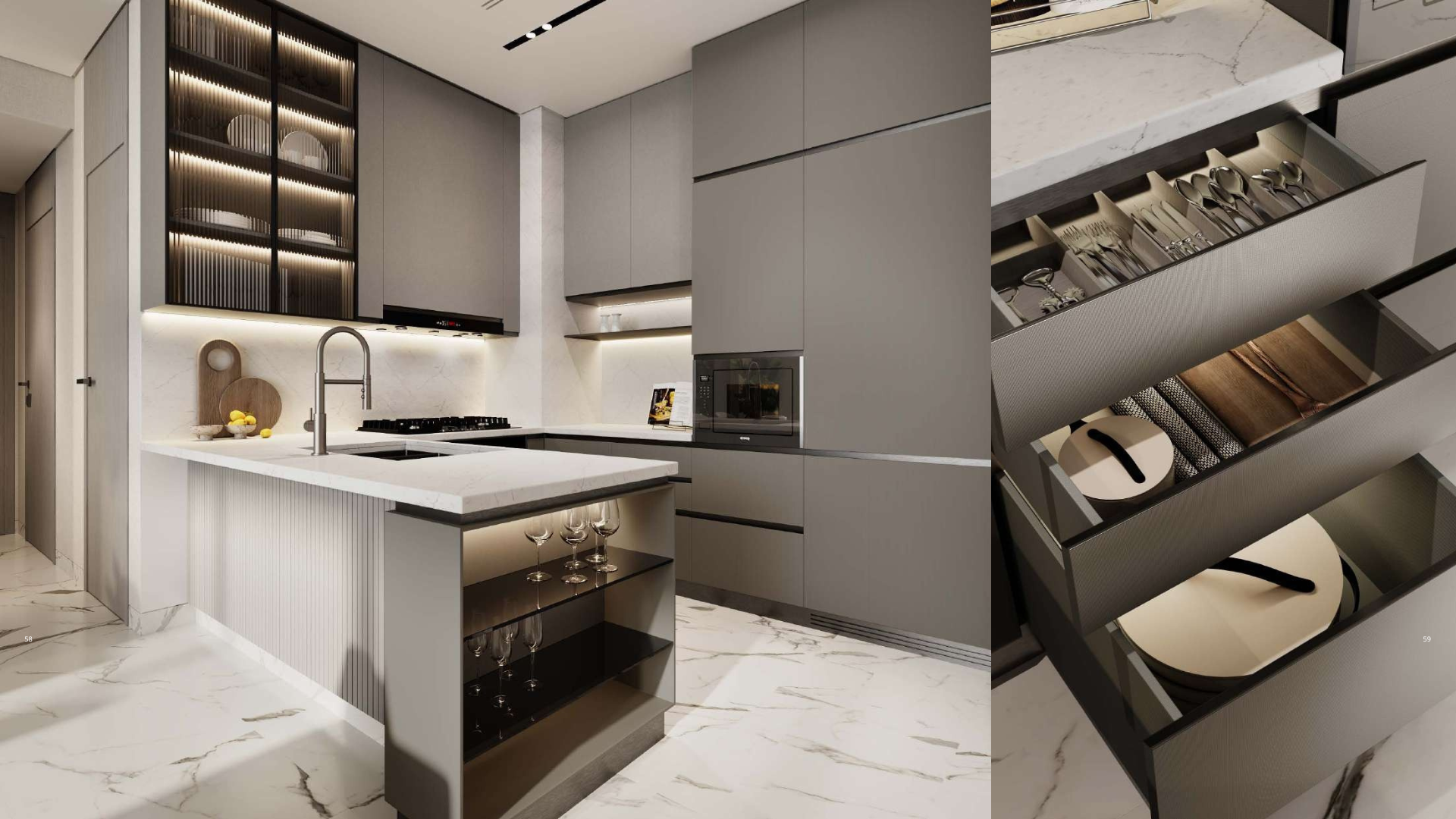 Die Kombination aus modernem Luxus und klassischer Eleganz macht diesen Bereich zu einem zentralen Ort des Wohnens, des Ankommens und der Repräsentation. Hier spiegelt sich die Vision von Amaal: Lebensräume zu erschaffen, die weit über Standards hinausgehen – in Qualität, Stil und Individualität.